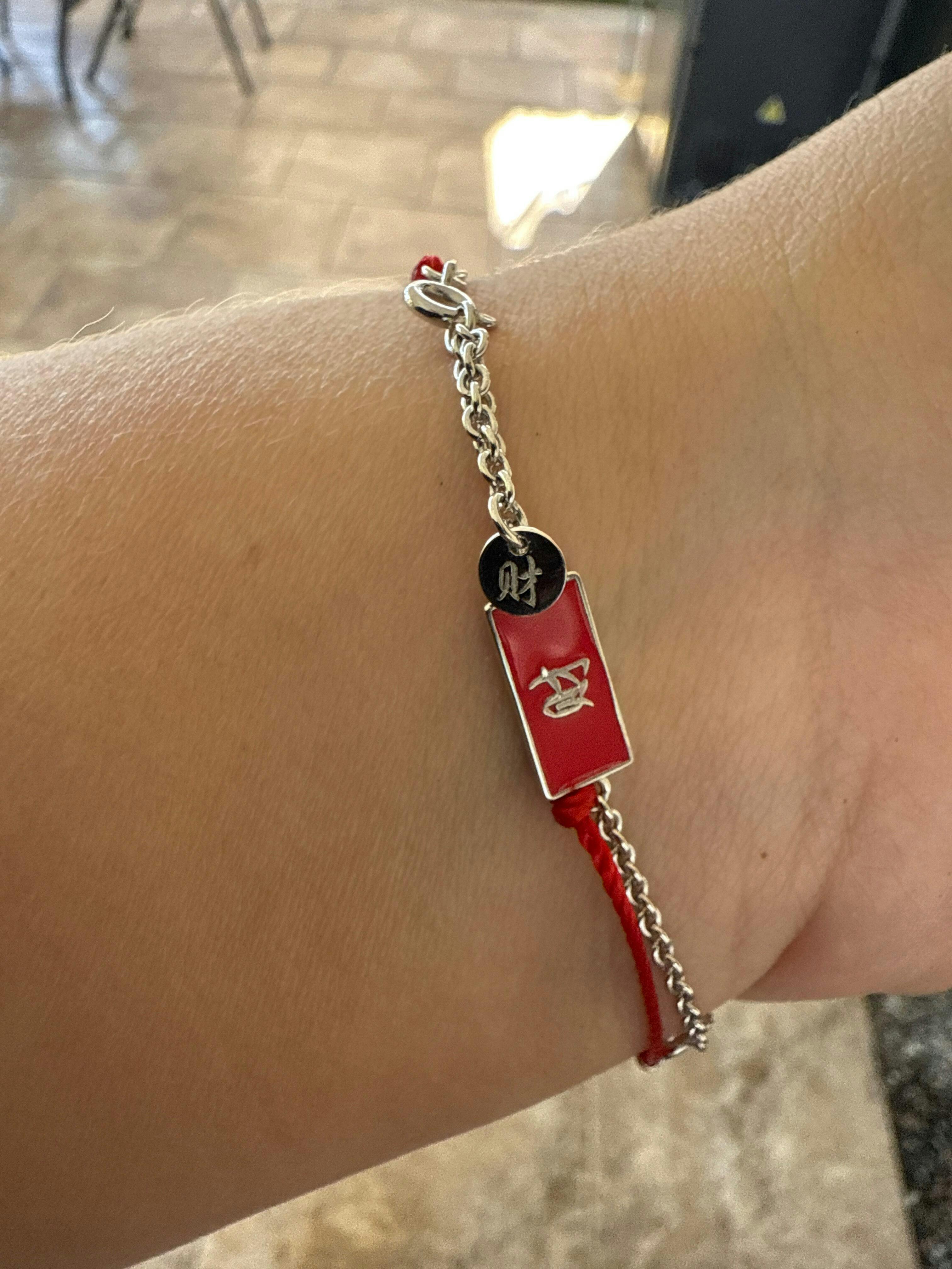 Keywords: Red string good luck bracelet, Adjustable red string bracelet, Chinese wealth symbol bracelet, white gold-plated red string bracelet
