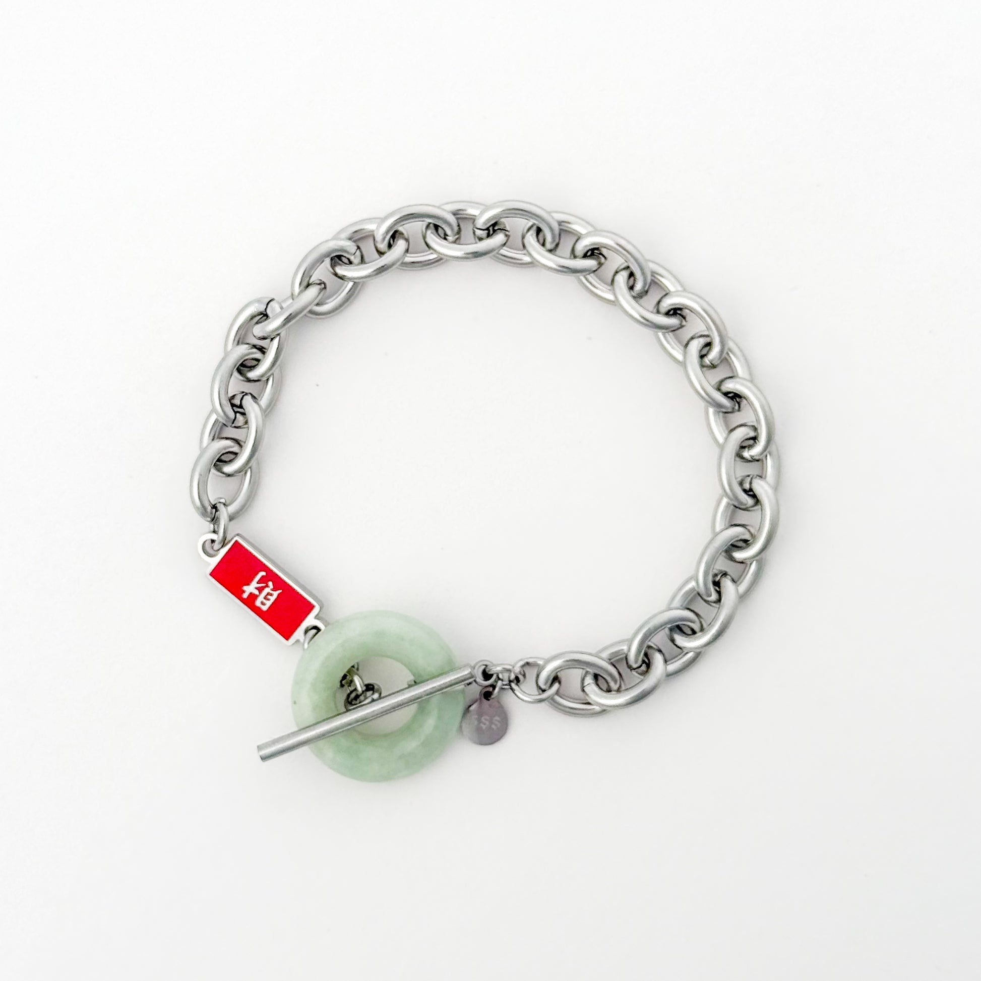 Keywords: Wealth and fortune bracelet, Jade crystal good luck bracelet, toggle bracelet, Chinese wealth bracelet