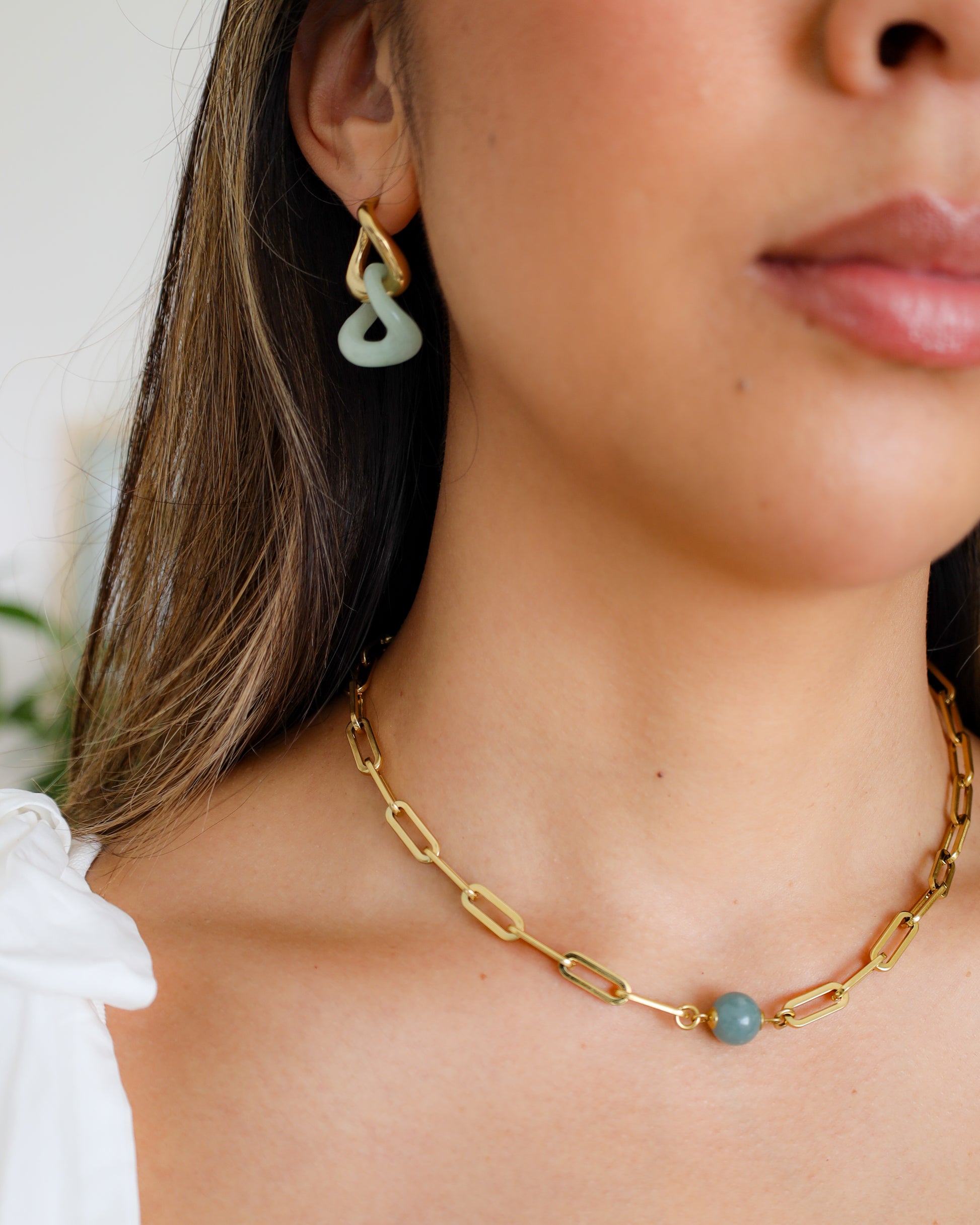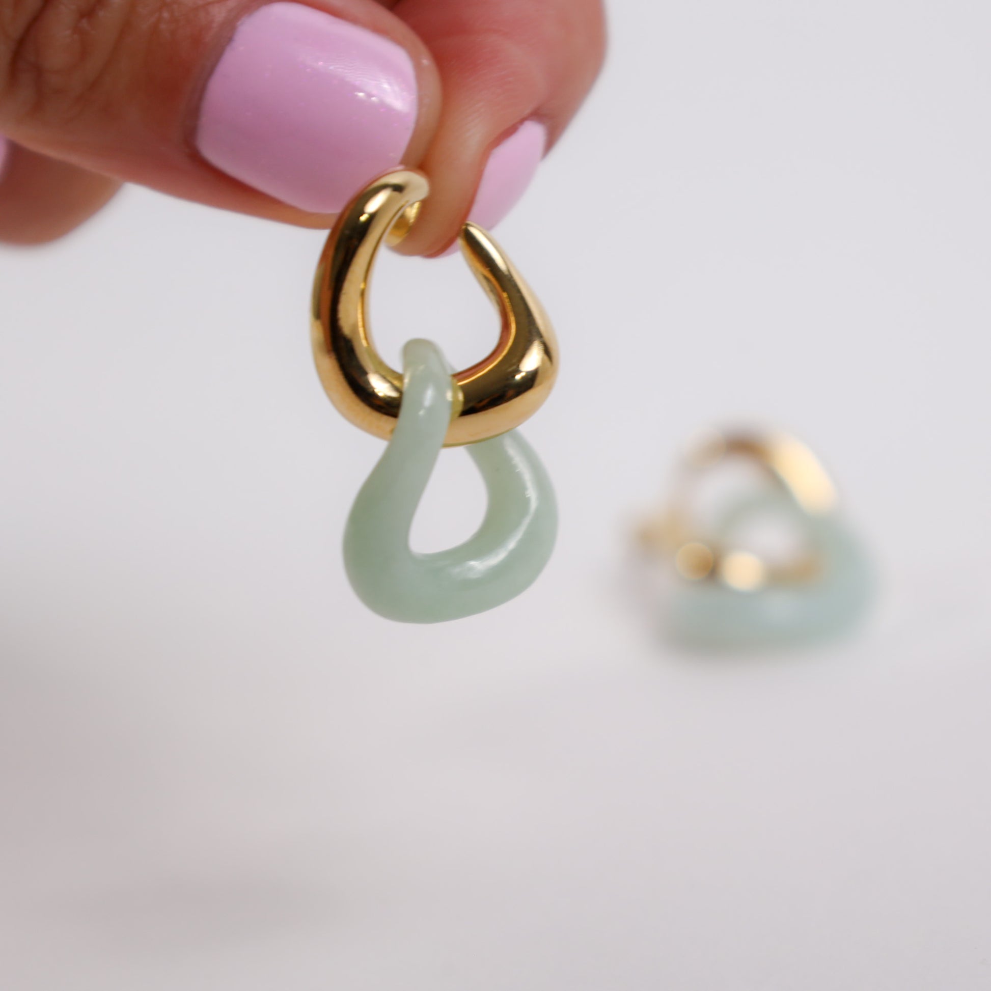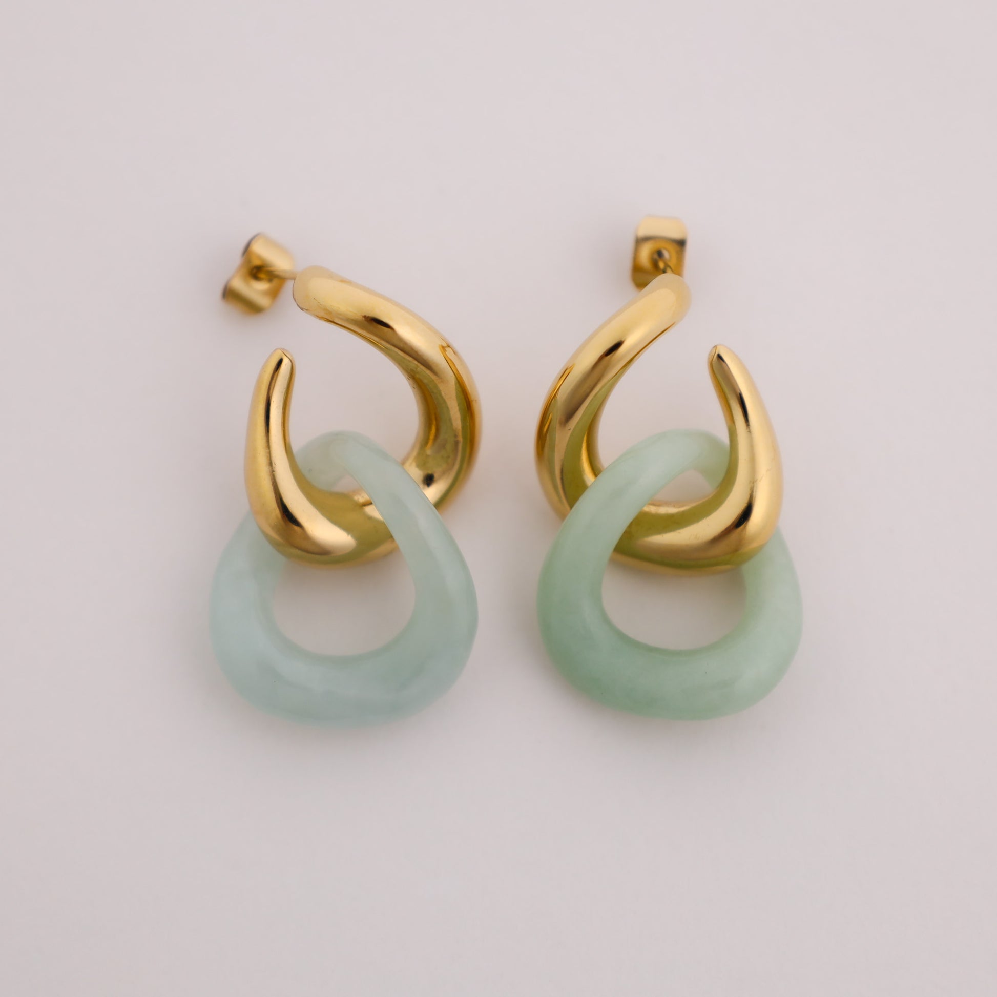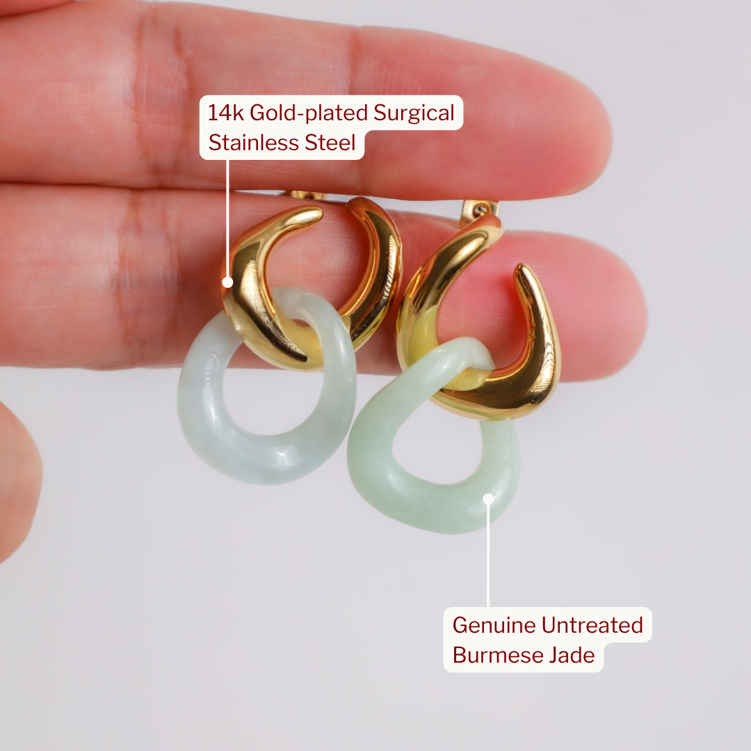 Bold jade and gold twisted hoops, reimagined with purpose and power.