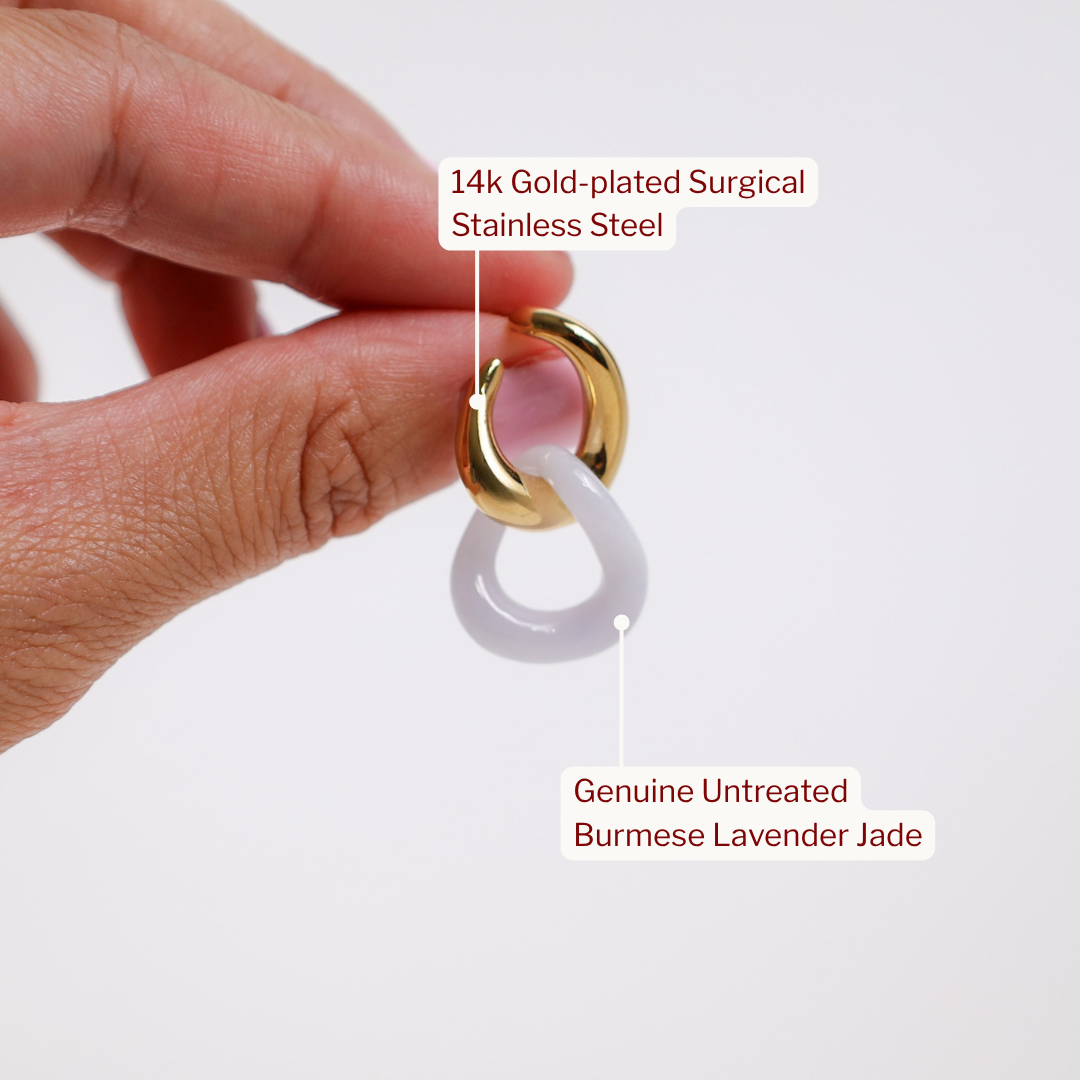 - Bottom Hoop: Removable authentic untreated jade hoop—available in green or lavender.